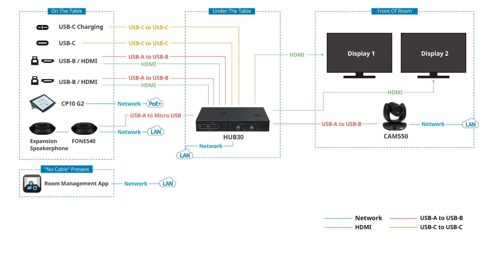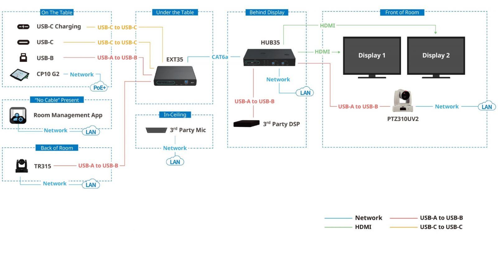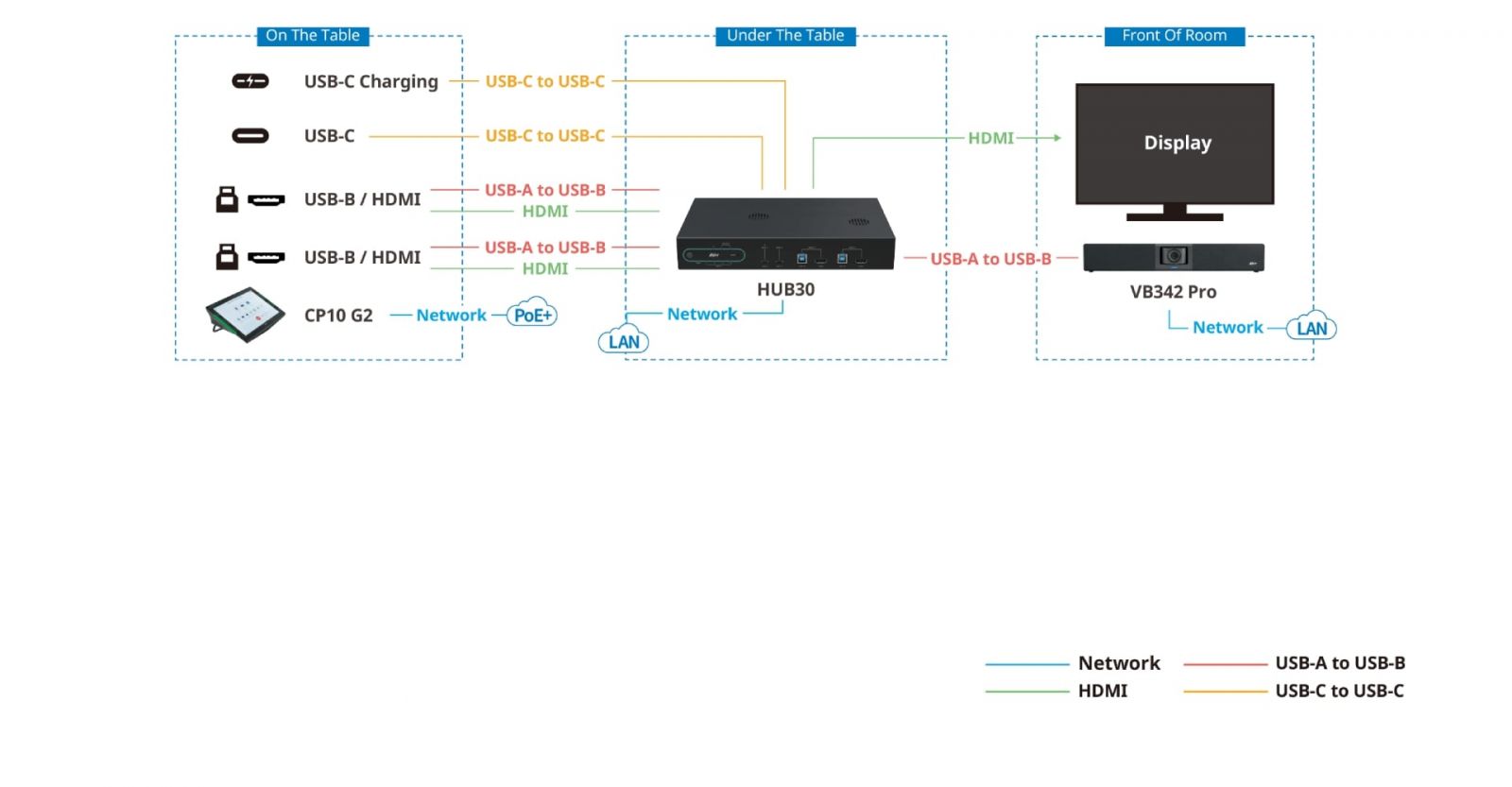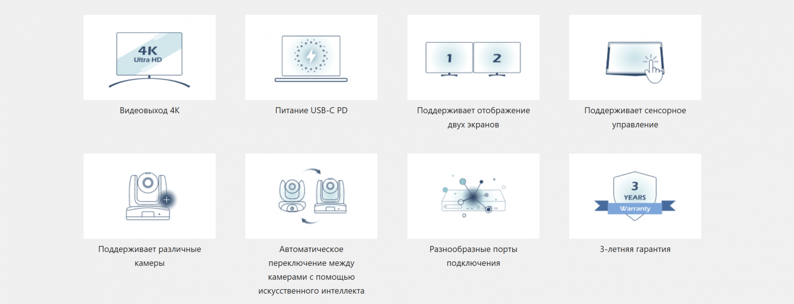 Откройте для себя возможности совместной работы с AVer HUB30, матричным коммутатором BYOM 4K. Подключение через USB-C обеспечивает передачу видео и звука 4K и быструю подачу питания. Кристально чистое изображение и удобная интеграция обеспечиваются четырьмя входами, поддержкой двух экранов и интуитивно понятным сенсорным управлением через AVer CP10 G2. Динамичное видео с разных ракурсов достигается благодаря переключению двух камер AVer. Универсальное решение, совместимое с профессиональными AV-камерами AVer и USB-камерами для конференций, обеспечивает профессиональную производительность в любом месте.
