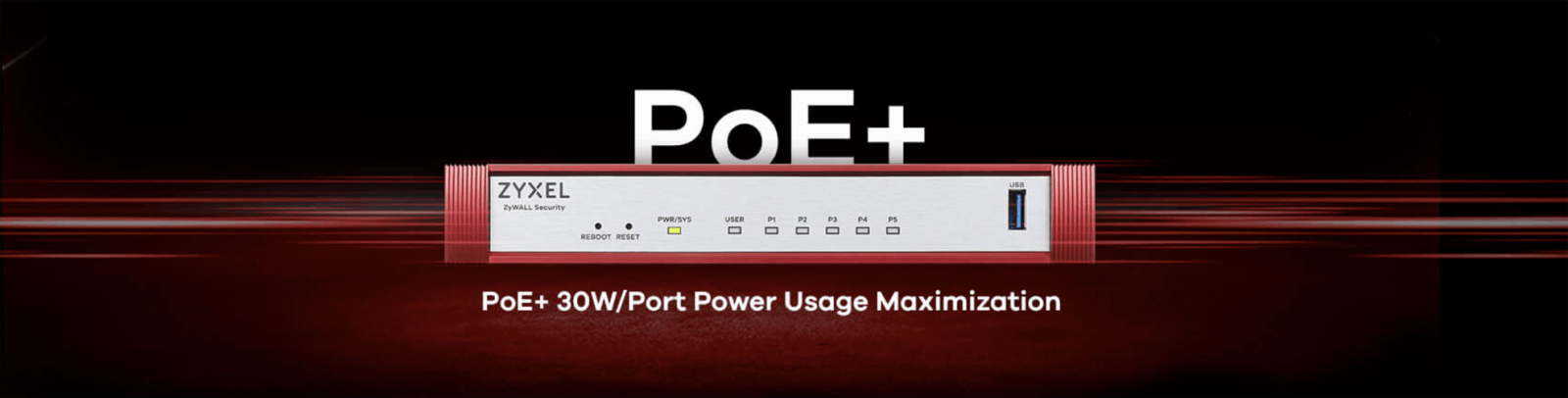 USG FLEX 50HP предлагает до 2 встроенных портов PoE+ мощностью 30 Вт*1 что помогает снизить сложность и затраты на установку таких устройств, как 5G/4G роутеры, точки доступа Wi-Fi или VoIP телефоны, запитав их непосредственно от самого межсетевого экрана.